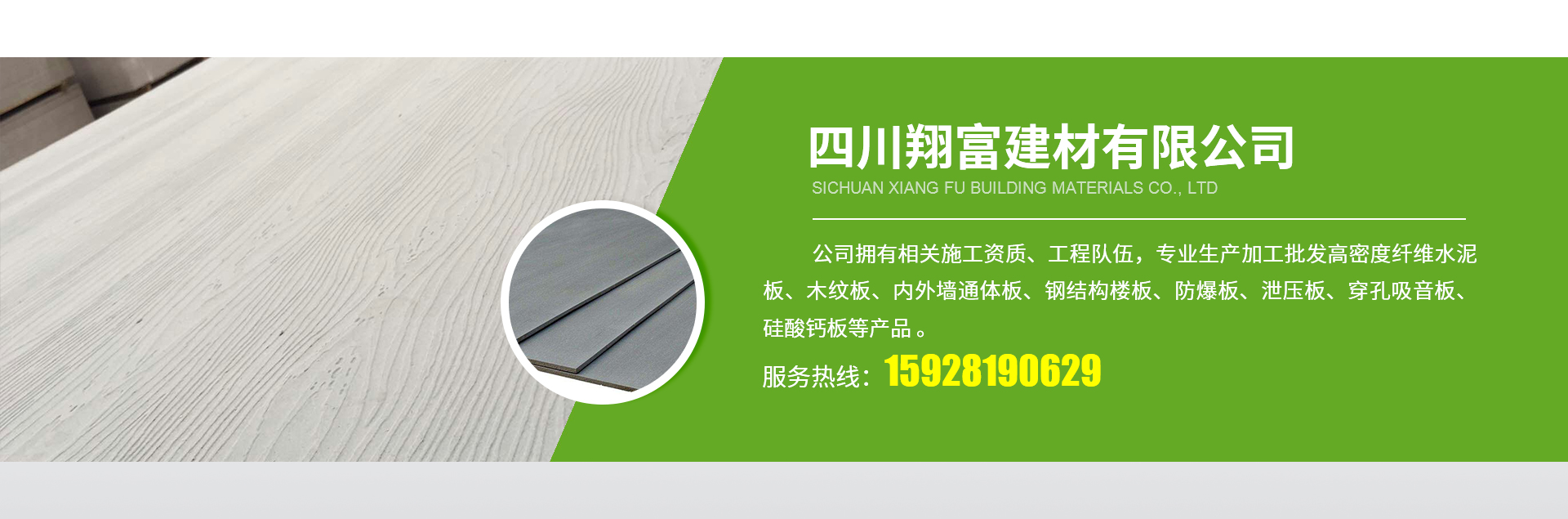 四川翔富建材有限公司是耐火、防火材料、纖維水泥板、硅酸鈣板、防爆板、防爆泄壓板、鋼結構樓板、穿孔吸音板、無石棉纖維水泥板、內外墻板等產品專業生產加工的公司,擁有完整、科學的質量管理體系。四川翔富建材有限公司的誠信、實力和產品質量獲得業界的認可。歡迎各界朋友蒞臨參觀、指導和業務洽談。